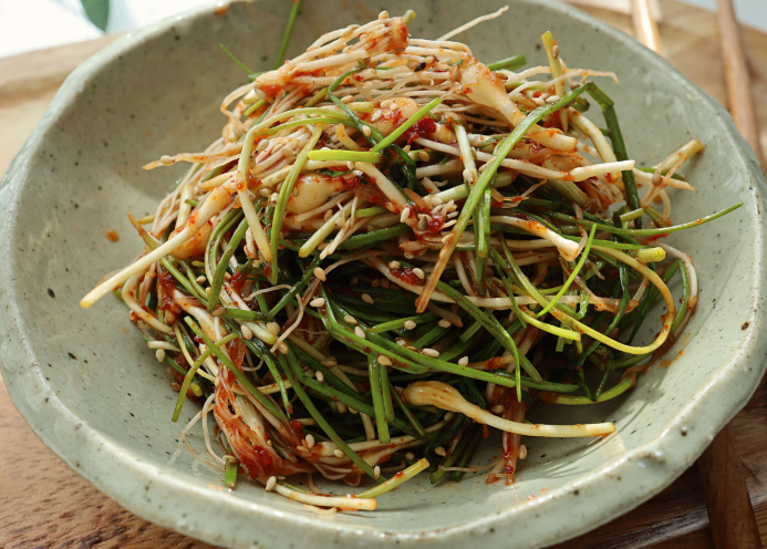 1️⃣ 달래를 깨끗이 씻어 뿌리를 다듬고 물기를 제거한다.