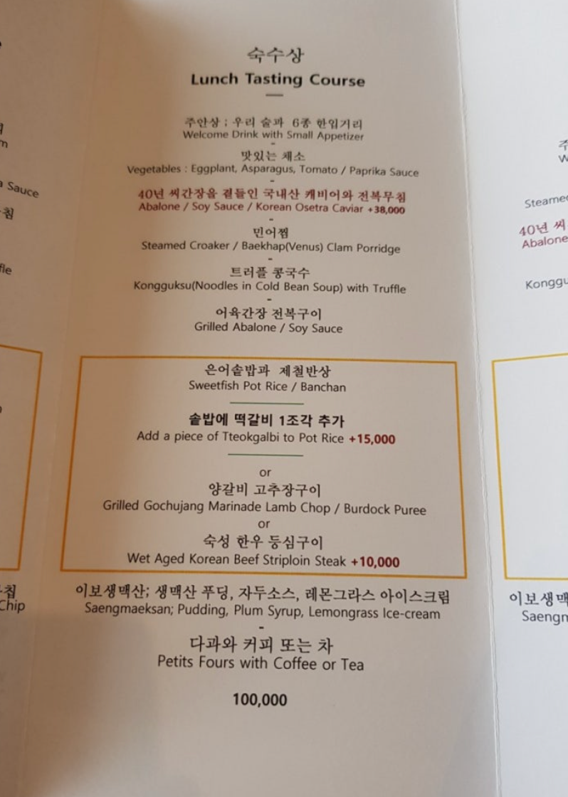 🔸 예약 팁: 화이트데이 2~3주 전 예약 필수! 저녁 시간대 인기미쉐린 2 스타를 받은 고급 한식 다이닝으로